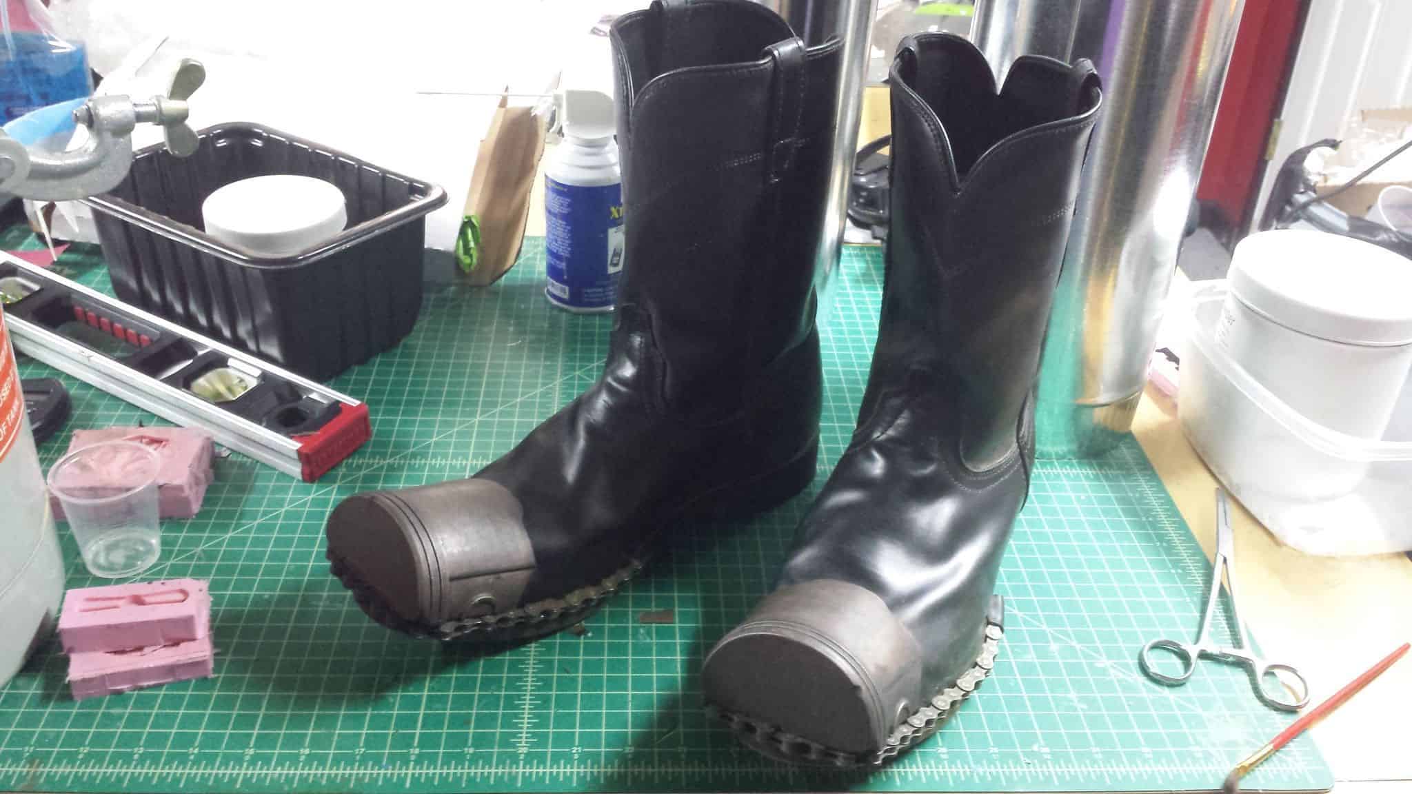 I got my boots done with the 3d printed toe caps and bike chain that I salvaged from a bike that my neighbor was throwing out.