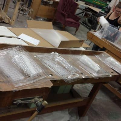 Been super busy lately with work, but I did get the chance to make my biceps up. I actually had to try a couple iterations of it to get something that looked proportionate with what I think I need on the rest of the armor, as my first few attempts were too thin. Eventually, to get something consistent, I made a pattern out of craft foam that fit pretty comfortably and traced it onto some leftover PETG from my vacuform arm scrap. This then got laid overtop a 5″ diameter HVAC aluminum pipe that I bought from Home Depot for like $6. Because it’s aluminum, it’s safe to heat the plastic up against, so I was able to take a heat gun and do some bending to try and get the plastic to wrap around the curve.