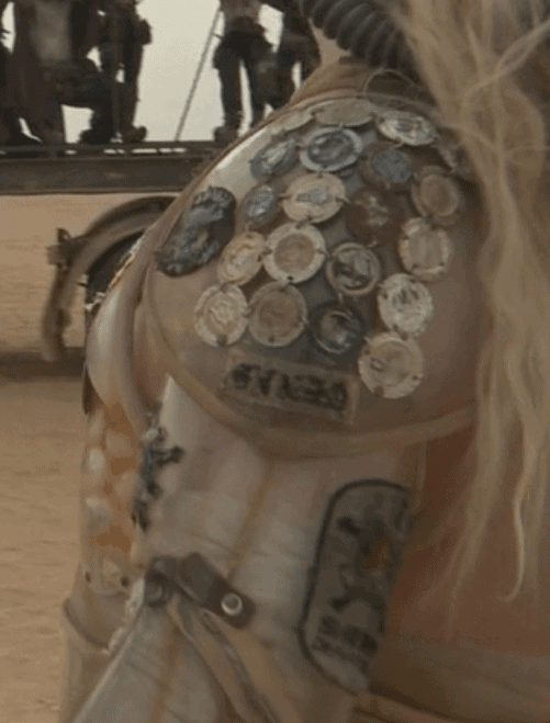 I figured I’d get the bottlecaps for the shoulder done and out of the way so I had them to use as a scale reference against a side-on photo I found of Joe’s costume. After mocking it up, I have to say… I’m 6’2″… but holy hell, Hugh Keays-Byrne must be a monster of a man to have armor that size.